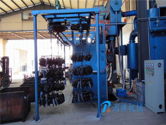 工件隨吊鏈可連續(xù)運行、步進運行或采用積放推式懸鏈輸送工件,使工件在裝卸料以及拋丸區(qū)分別處于停止狀態(tài),實現(xiàn)定點裝卸和定點拋丸工序,根據(jù)工件不同可單點吊重50~2000kg,且生產(chǎn)率高,運行可靠,對各類易吊掛類零件的大批量清理,非常適用。如發(fā)動機缸體缸蓋、電機殼體、齒輪、摩托車發(fā)動機殼體、機車鉤尾框組件、轉(zhuǎn)向架組件、五金工具殼體、水泵等清理效果尤佳。通過拋丸清理,不但可以去除工件表面的銹蝕,清理掉結(jié)構(gòu)件上的焊渣,還可以消除工件的焊接應(yīng)力,提高工件的抗疲勞強度,增加工件噴漆時的漆膜附著力,并達到提高整個工件表面及內(nèi)在質(zhì)量的目的。是汽車、拖拉機、柴油機、電機、閥門等行業(yè)的理想選擇等。一般可按照用戶產(chǎn)品要求設(shè)計制作。